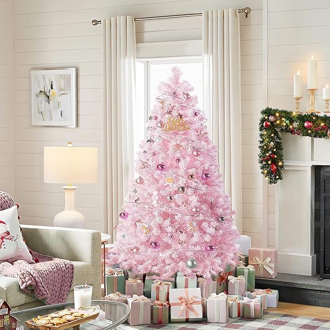 4.5ft Snow Flocked Christmas Tree, Premium Hinged Artificial Pine Tree with 400 Lush Branch Tips, Easy Assembly and Metal Stand for Indoor & Outdoor Holiday Decoration. |